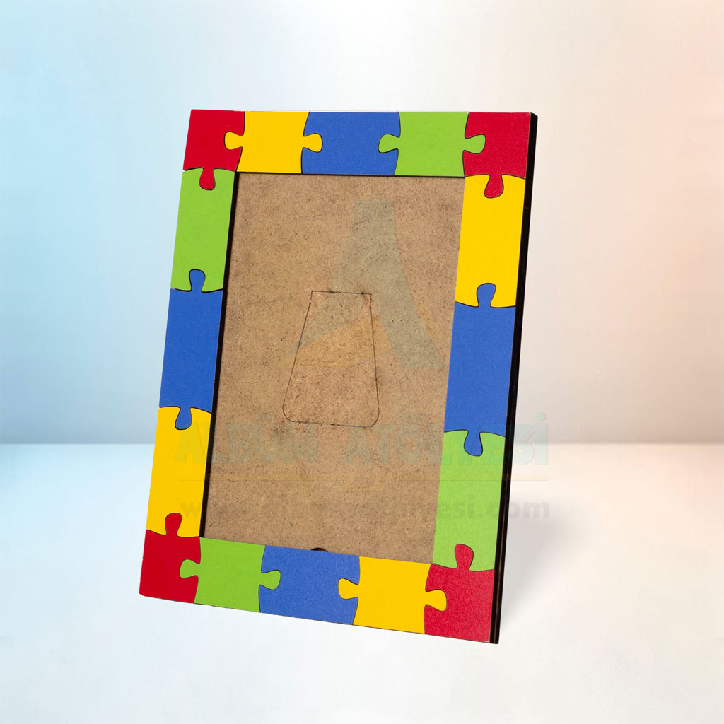 Bu şık masa üstü fotoğraf çerçevesi, en sevdiğiniz anıları sergilemek için mükemmel bir seçenektir. Ahşap MDF malzemeden yapılmış olan bu çerçeve, sağlam yapısı ve renkli yapboz tasarımıyla dikkat çeker.